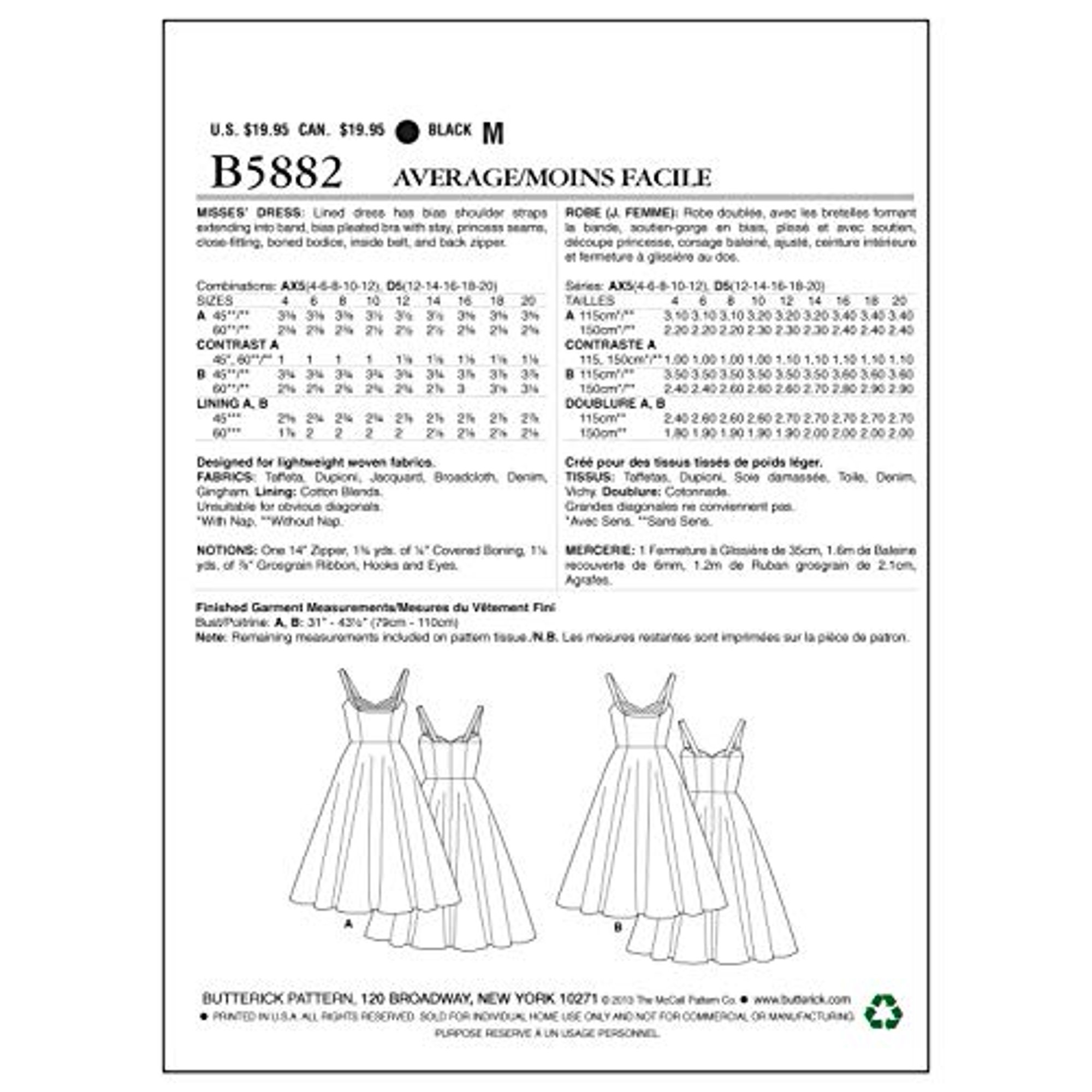 56+ Butterick Patterns B5882 Misses Dress Sewing Templates